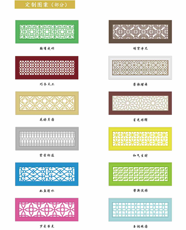 藝術(shù)風(fēng)口-年年有余裝飾的詳細(xì)頁面。訂貨號(hào):藝術(shù)風(fēng)口,貨號(hào):土豪金,種類:百葉式風(fēng)口,用途:出風(fēng)口,材質(zhì):環(huán)保鍍鋅板,形式:單層,品牌:順智,型號(hào):仿古銅色,是否跨境貨源:否,規(guī)格:可定制。我公司專業(yè)設(shè)計(jì)制造各類藝術(shù)風(fēng)口,高端酒店及別墅豪華藝術(shù)風(fēng)口,顏色款式客根據(jù)客戶要求定制,可大規(guī)模批量生產(chǎn)可承擔(dān)現(xiàn)場(chǎng)安裝。